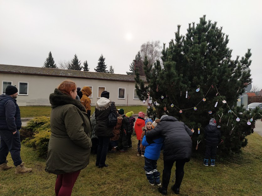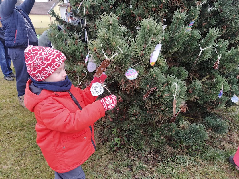 Děti z mateřské školy se zapojily do výroby dárků a vánočních přáníček. Společně s rodiči a babičkami pak pověsily na stromeček ručně nakreslené ozdoby, které samy vytvořily. Vše probíhalo v radostné a tvořivé vánoční atmosféře.