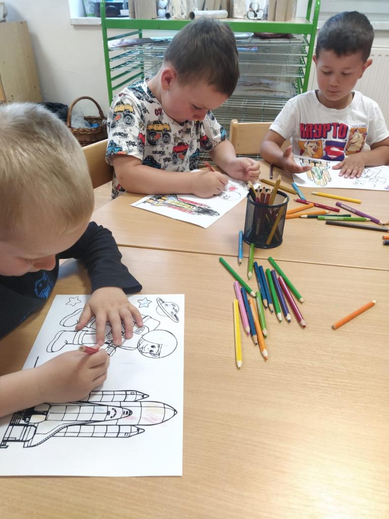 Startujeme co by dup, letíme, už ani muk. Vesmírem si frčíme, galaxie míjíme. Pozor! Nikdo ať nelení – je tu velké přistání!