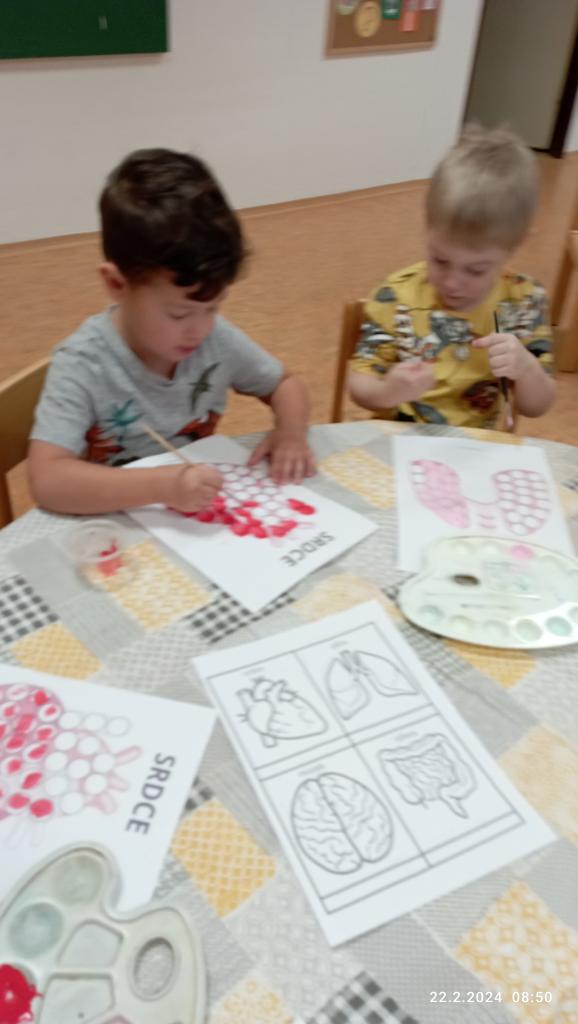 Moje tělo mozek řídí, oči ty to dobře vidí. Pod hlavou je krček malý, na rukách jsou velké svaly. Na nich máme prstů pět, spočítáme si je hned. v hrudním koši srdce máme, do bříška si jídlo dáme. Nohy obě procvičí se, venku dobře skotačí se!
