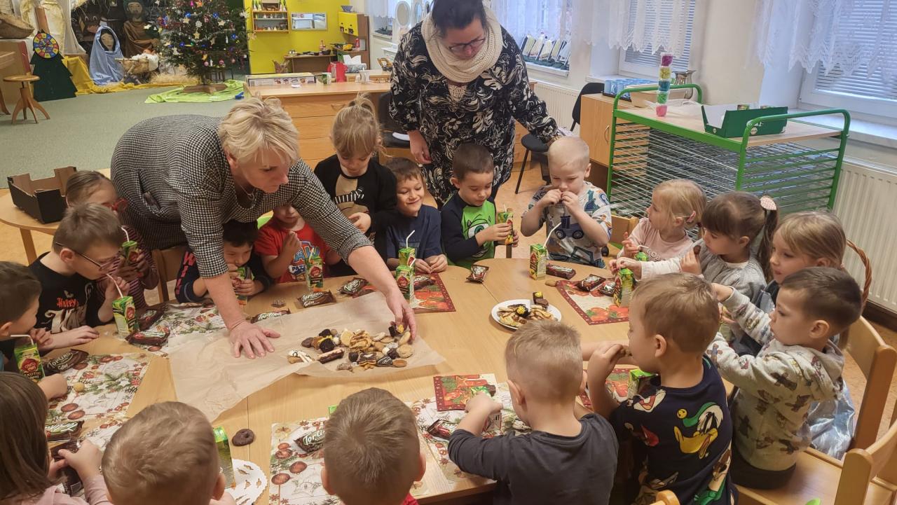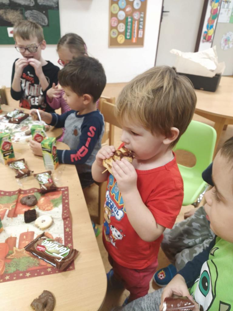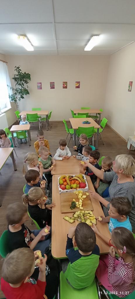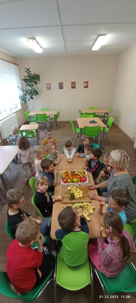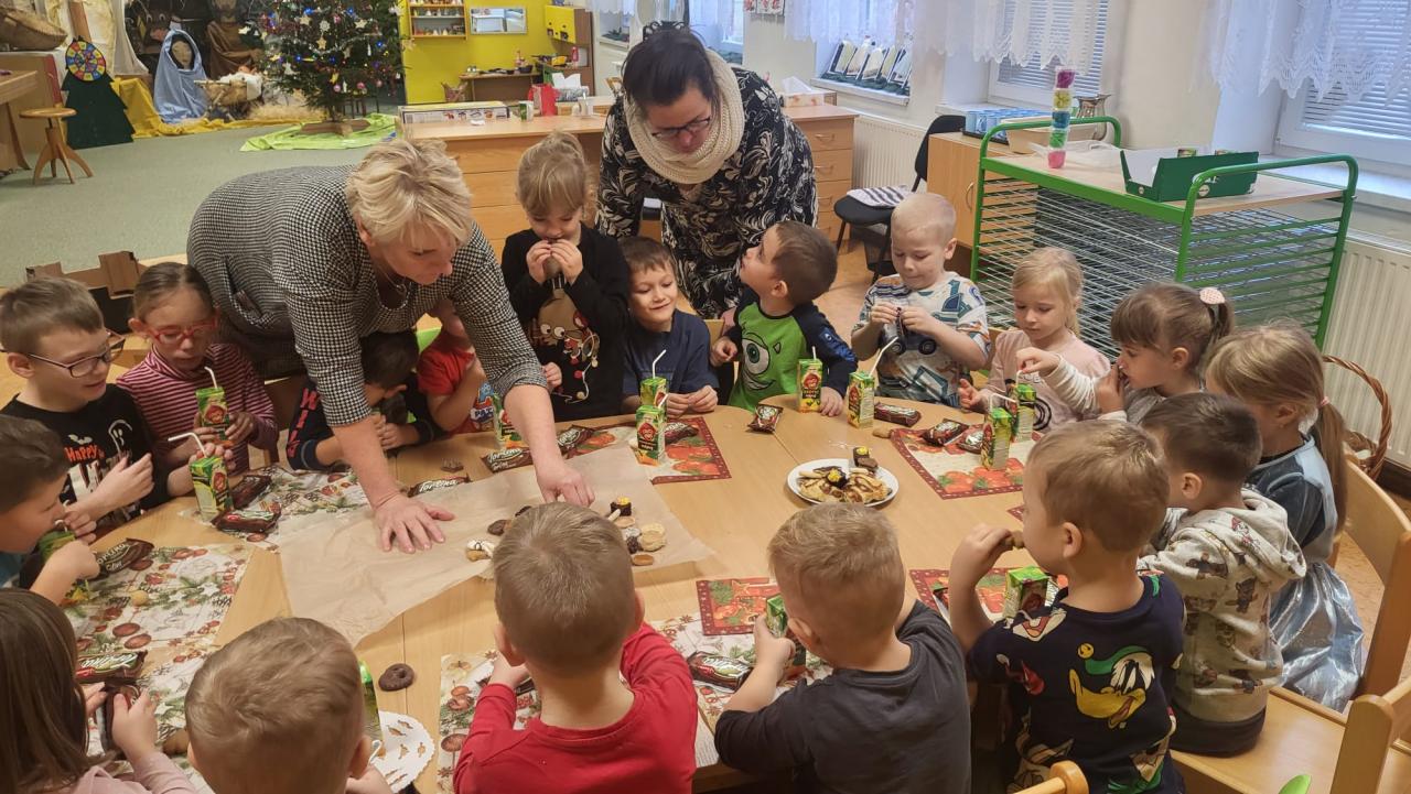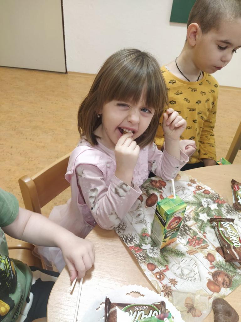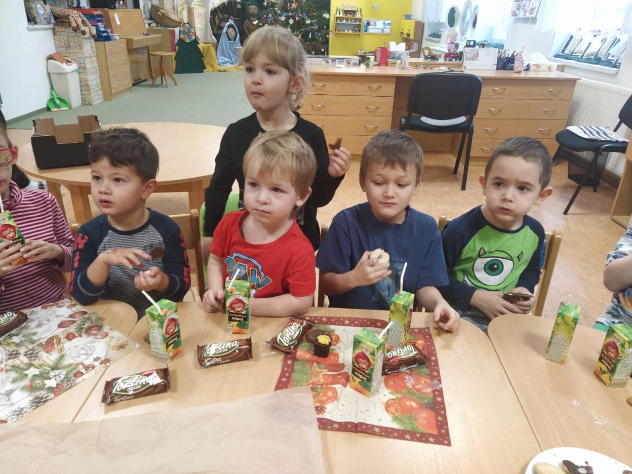 Ochutnali jsme společně dobroty od maminek, ale také výborný ovocný koš , který dětem přinesla babička paní Gondeková. Zároveń chceme tímto moc poděkovat všem maminkám a babičkám za výborné cukroví.