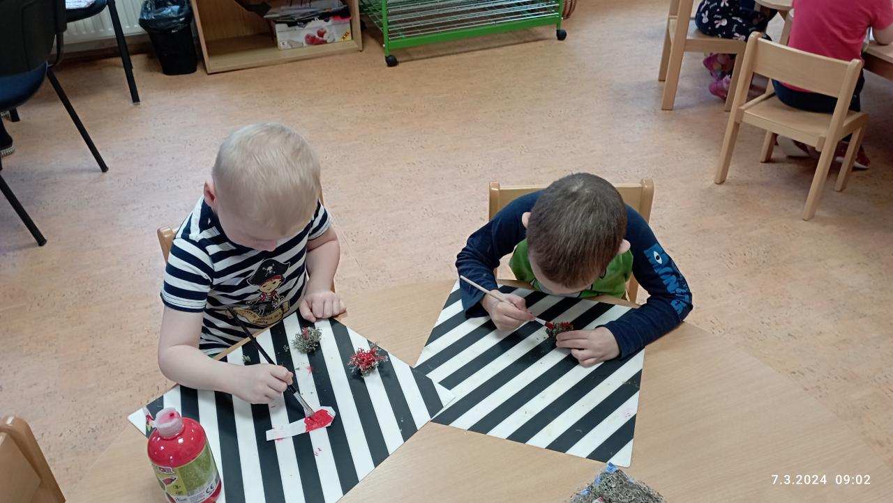 Paní učitelka Pavlína Jozefíková přišla s nápadem, přihlásit naši třídu Broučků do celorepiblikové soutěže DEN ZEMĚ na téma ,,V MOŘI JE MÍSTA DOST,,. S našimi dětmi pracujeme ve skupině, používáme nové výtvarné techniky pro naši práci. Využíváme materiály z přírody, které si děti samy nasbíraly. Ukázka fotografií bude vložena po uzávěrce soutěže, která je dne 25. 3. 2024