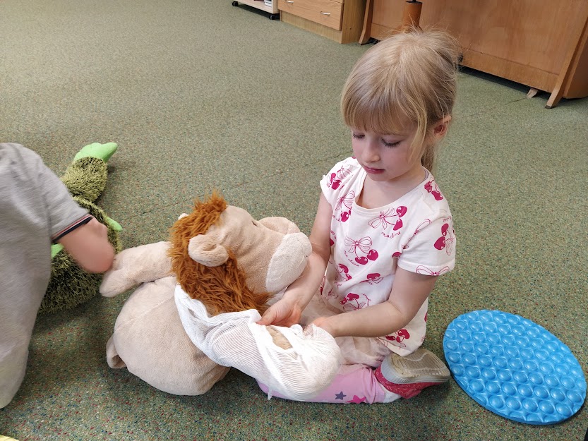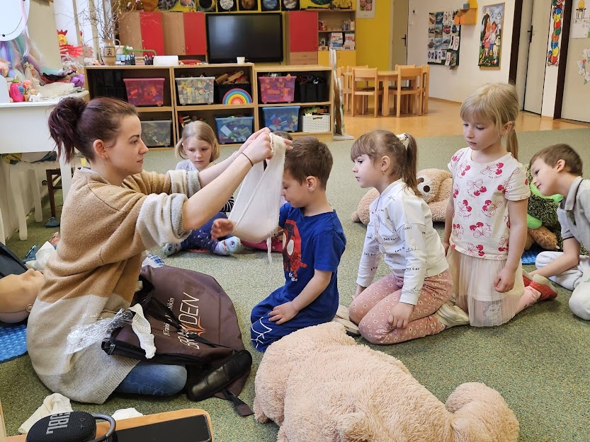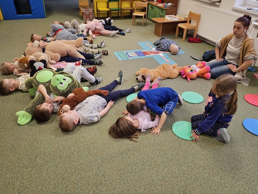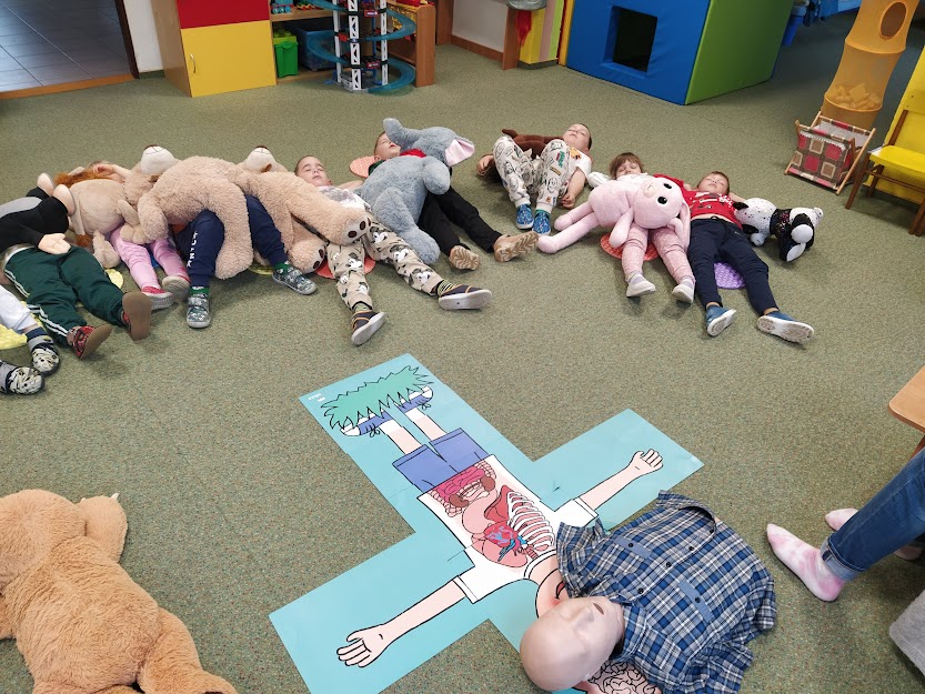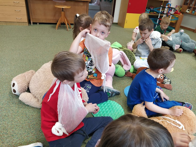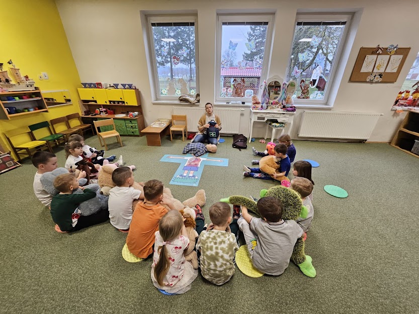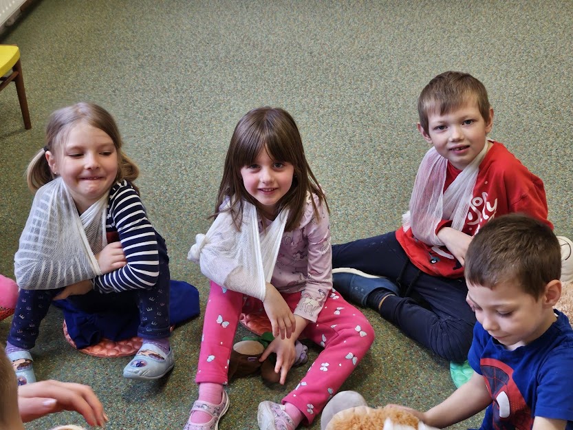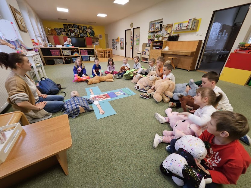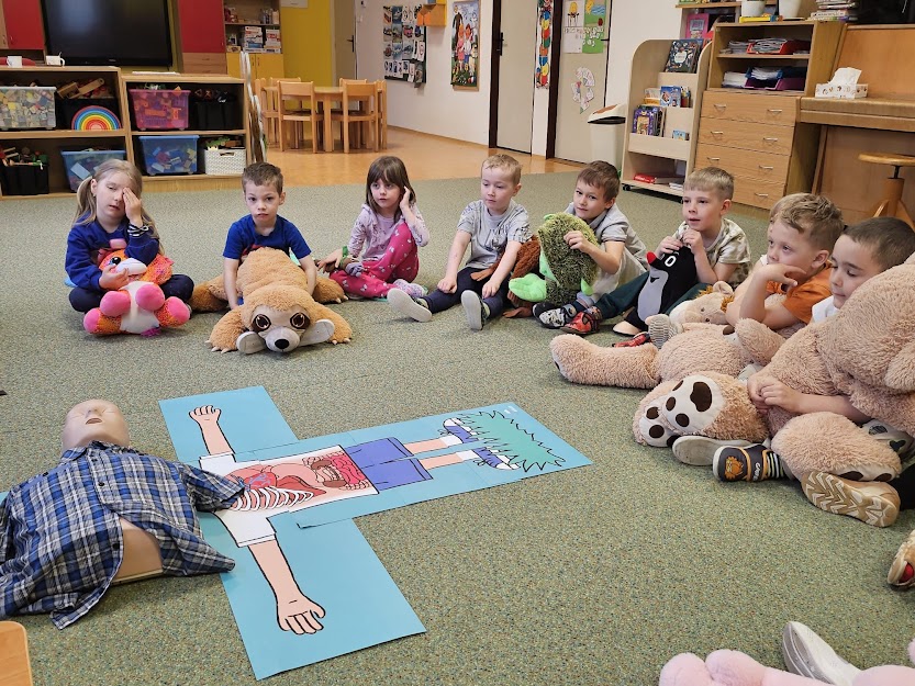 DĚTI SE SEZNÁMILY S TELEFONNÍMI ČÍSLY, OŠETŘOVALY DROBNÁ ZRANĚNÍ, VEDLY FIKTIVNÍ TELEFONNÍ ROZHOVOR S OPERÁTOREM ZACHRANNÉ SLUŽBY, VYZKOUŠELY SI NEPŘÍMOU SRDEČNÍ MASÁŽ NA SVÉ PLYŠOVÉ HRAČCE.