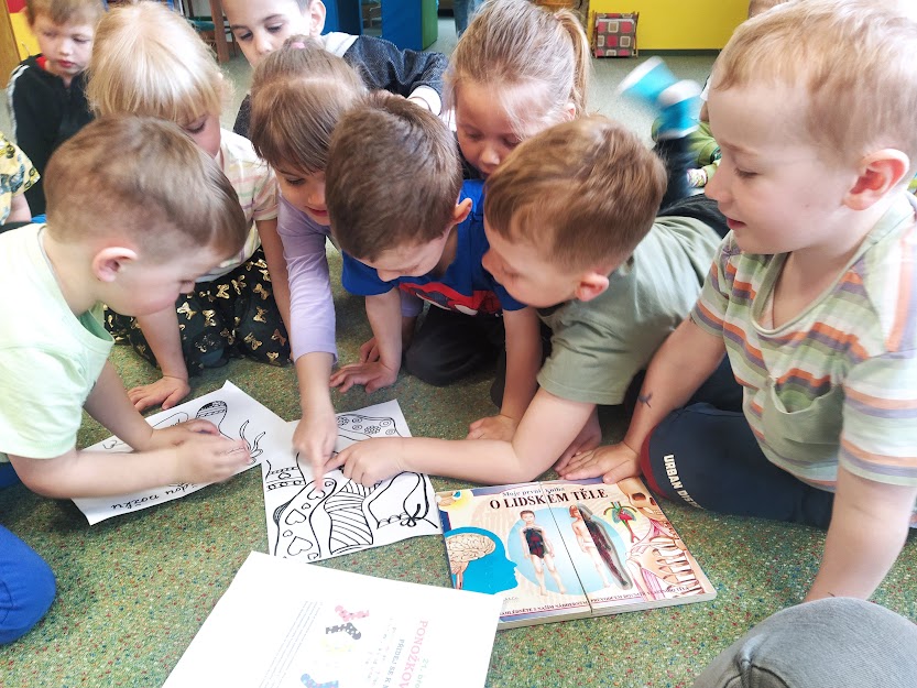POVÍDALI JSME SI O TOM, ŽE KAŽDÝ ČLOVĚK JE JINÝ - NÁŠ KAMARÁD MŮŽE BÝT VYSOKÝ, MALÝ, HUBENÝ, MŮŽE NOSIT BRÝLE.