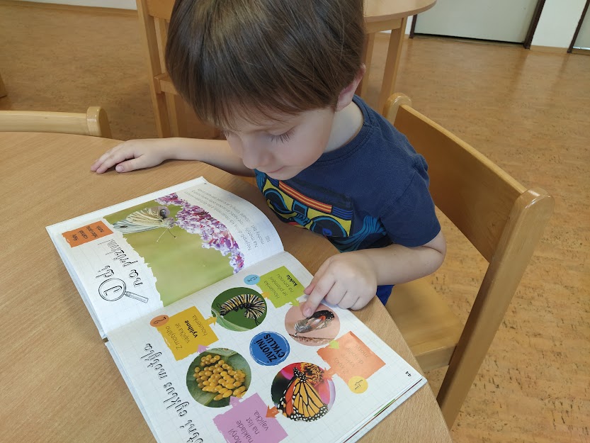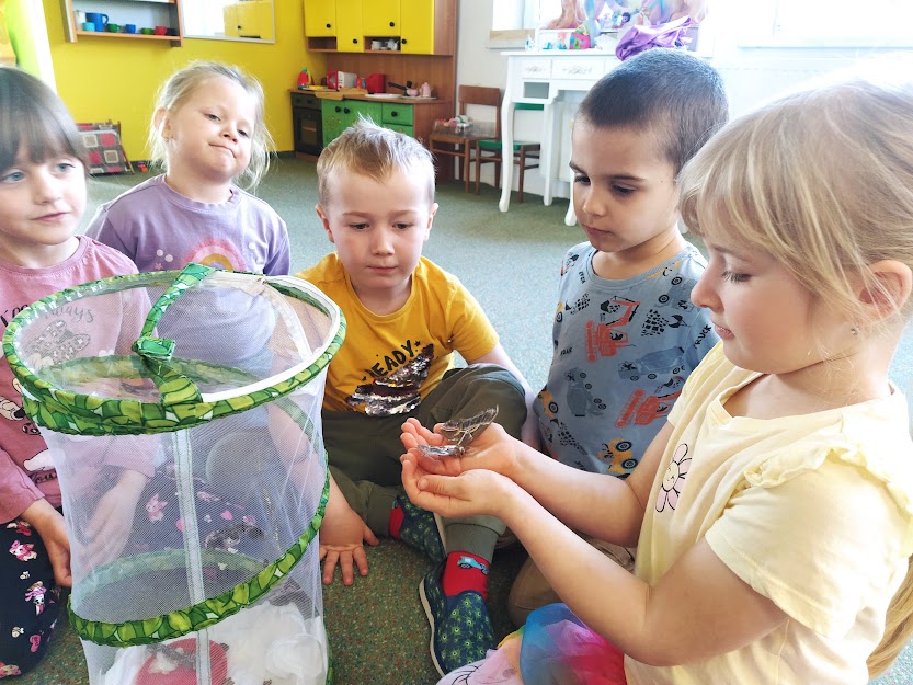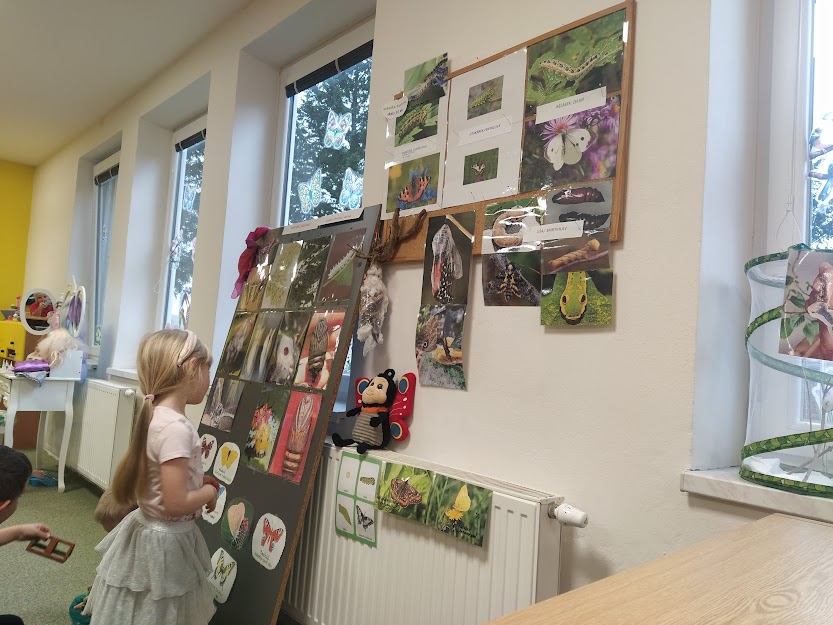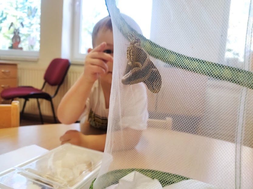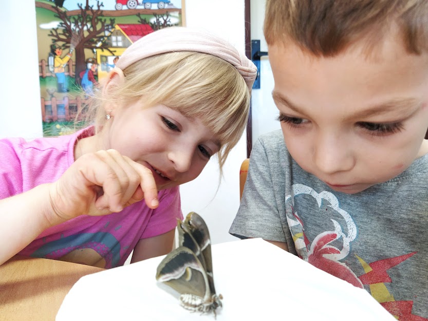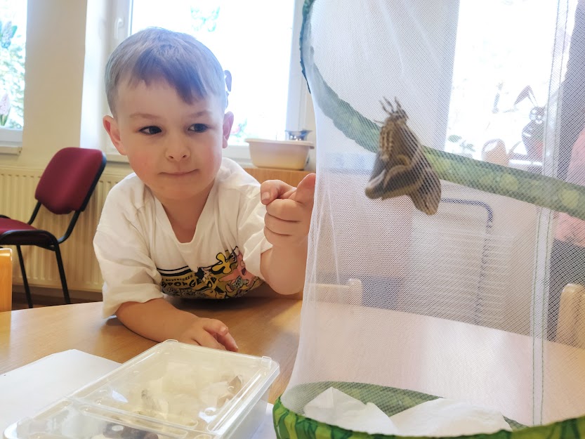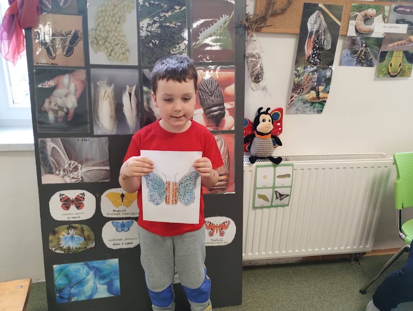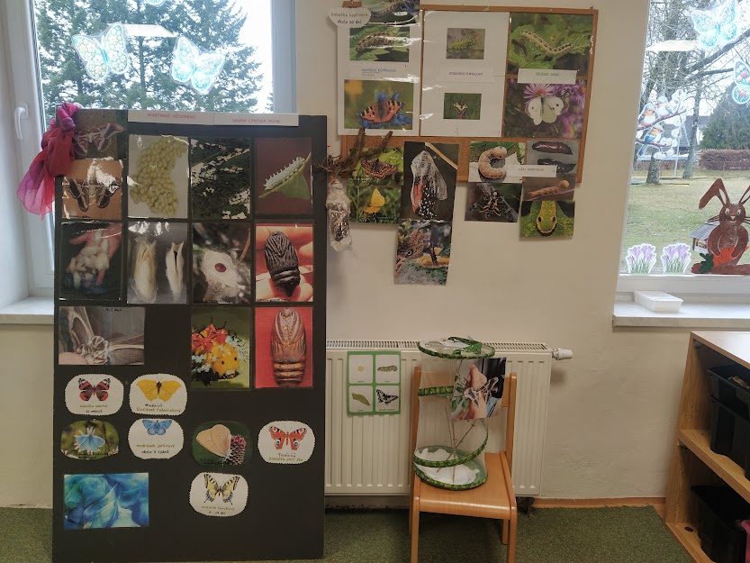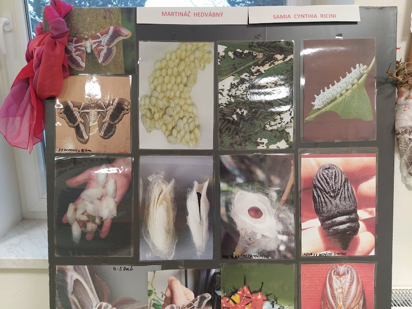 PANÍ UČITELKA PAVLÍNA J. SI PŘIPRAVILA VIVÁRIUM K CHOVU MARTINÁČE HEDVÁBNÉHO, NEJVĚTŠÍHO MOTÝLA V ČR. OD ÚNORA MOHLY DĚTI SLEDOVAT JEDNU Z NEJÚŽASNĚJŠÍCH PŘÍRODNÍCH PROMĚN, METAMORFOZU PŘÍMO VE ŠKOLCE. CELÝ CYKLUS VIDĚLY DĚTI NA VLASTNÍ OČI. NA ŽIVOT SEDMI MOTÝLŮ SE PŘIŠLY PODÍVAT I DĚTI ZE ŠKOLY.