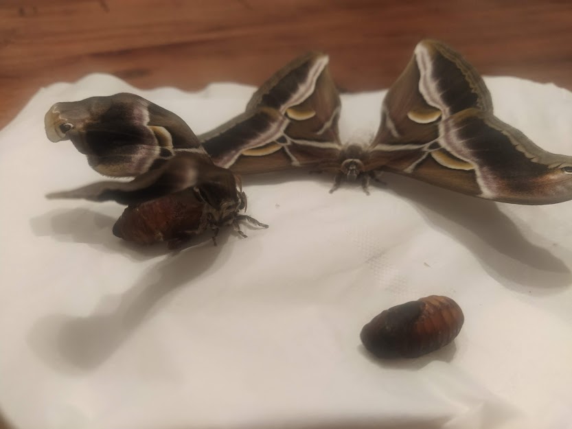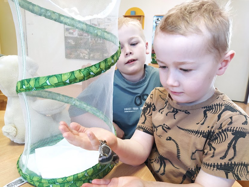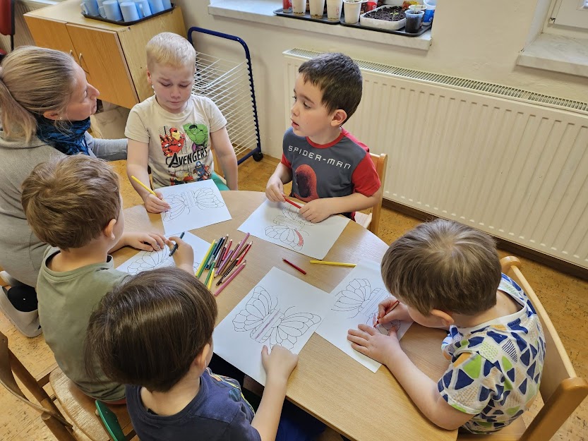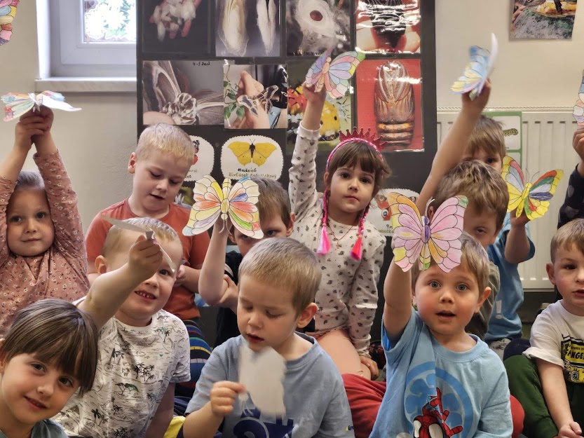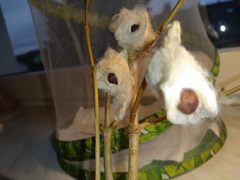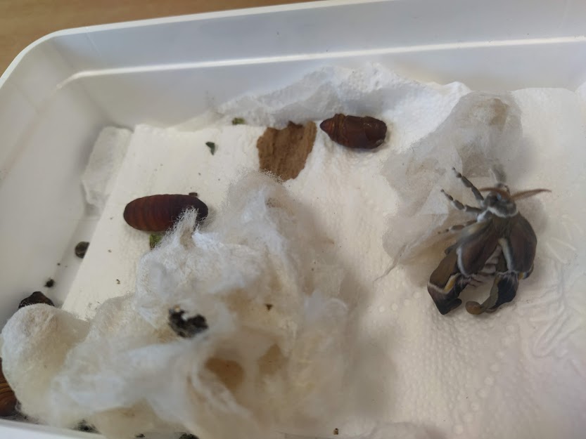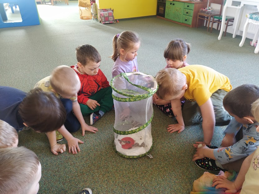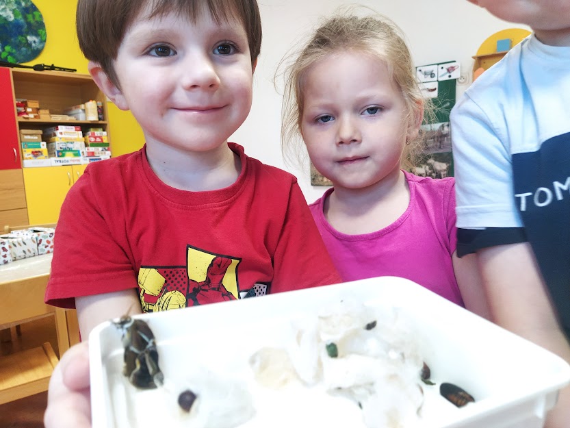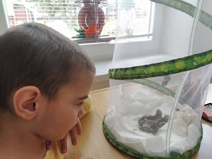 PANÍ UČITELKA PAVLÍNA J. SI PŘIPRAVILA VIVÁRIUM K CHOVU MARTINÁČE HEDVÁBNÉHO, NEJVĚTŠÍHO MOTÝLA V ČR. OD ÚNORA MOHLY DĚTI SLEDOVAT JEDNU Z NEJÚŽASNĚJŠÍCH PŘÍRODNÍCH PROMĚN, METAMORFOZU PŘÍMO VE ŠKOLCE. CELÝ CYKLUS VIDĚLY DĚTI NA VLASTNÍ OČI. NA ŽIVOT SEDMI MOTÝLŮ SE PŘIŠLY PODÍVAT I DĚTI ZE ŠKOLY.