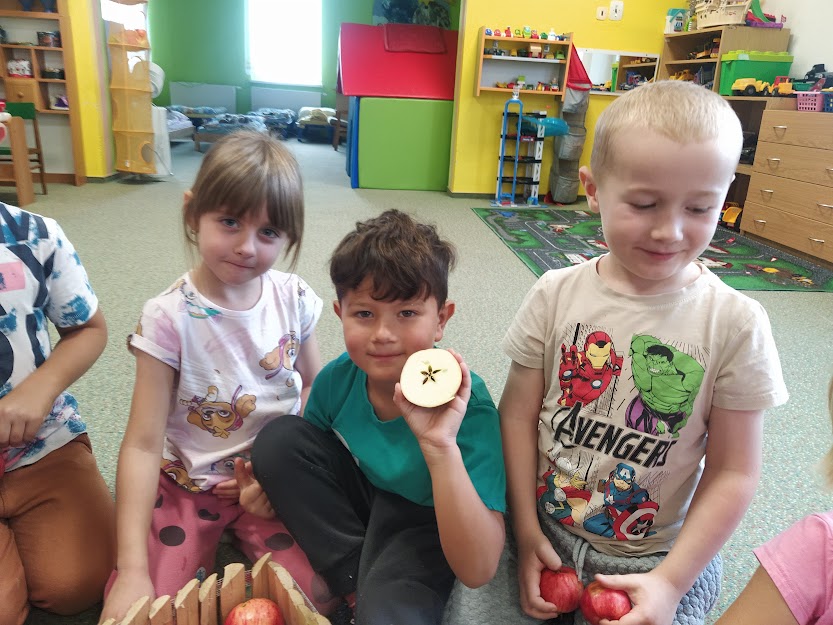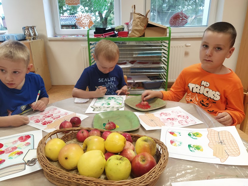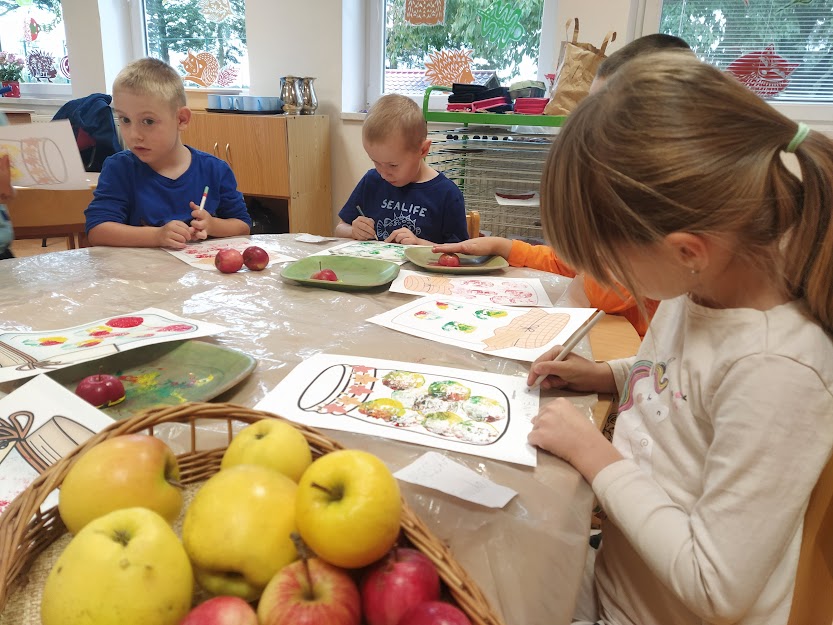 DĚTI SI UDĚLALY I VÝSTAVKU JABLÍČEK, KTERÉ POTOM OCHUTNALY.