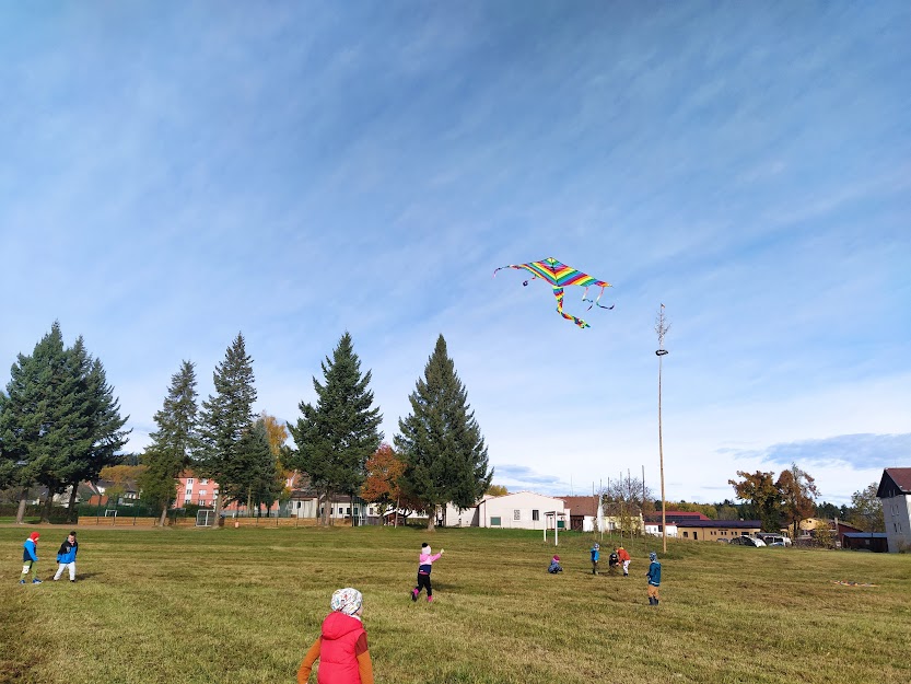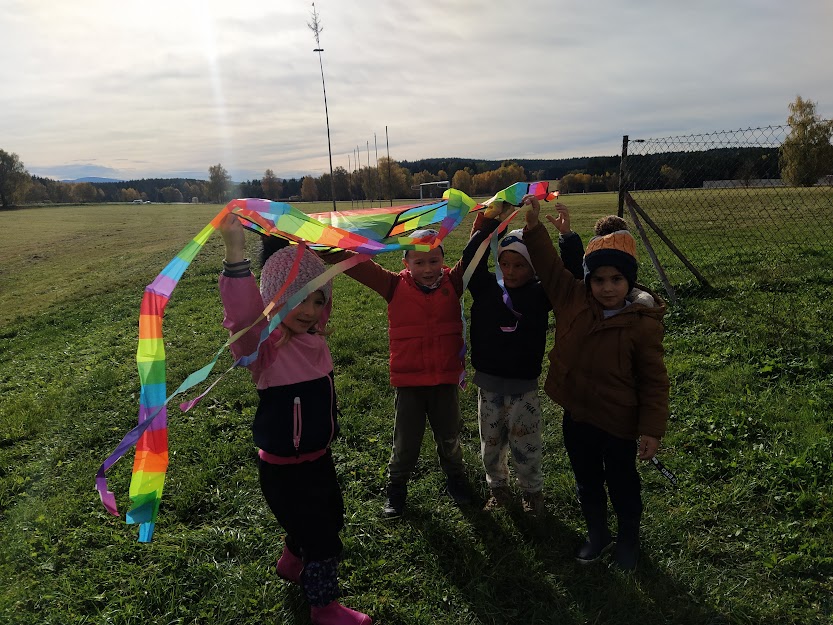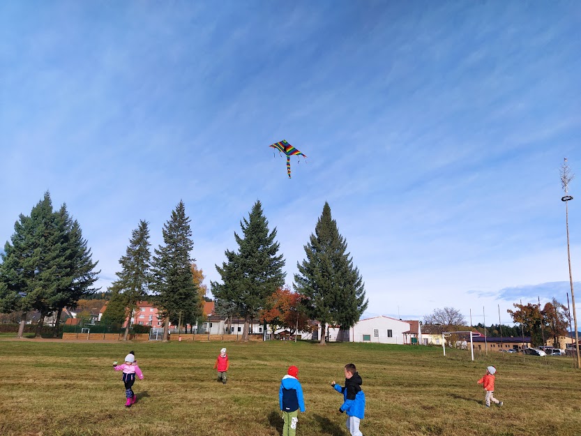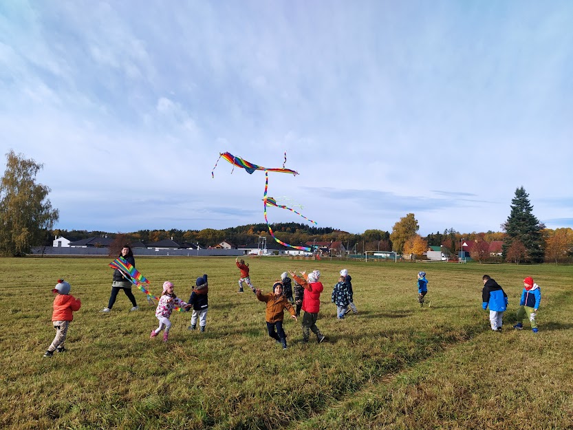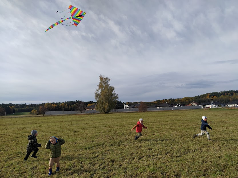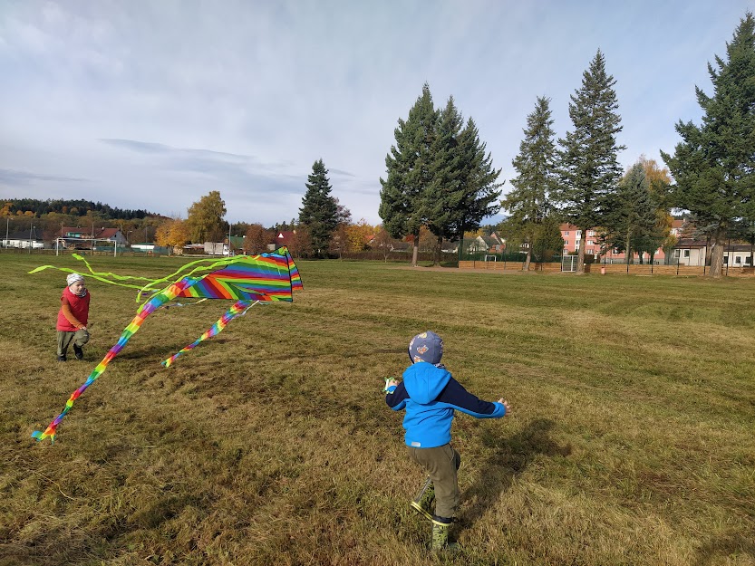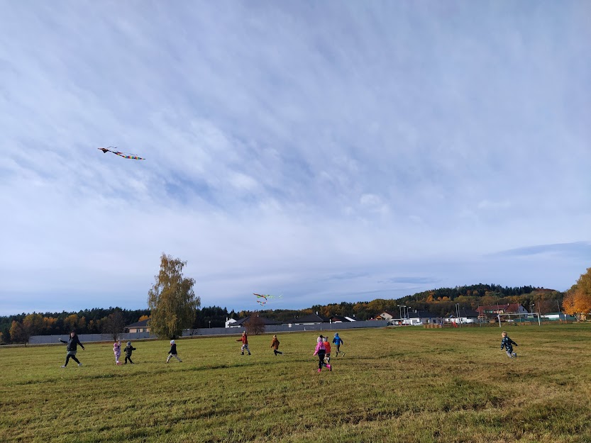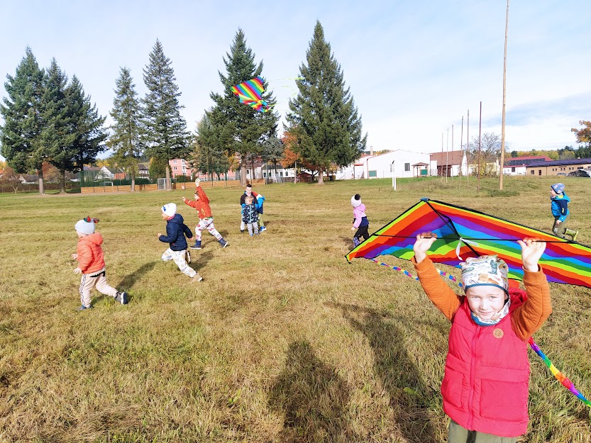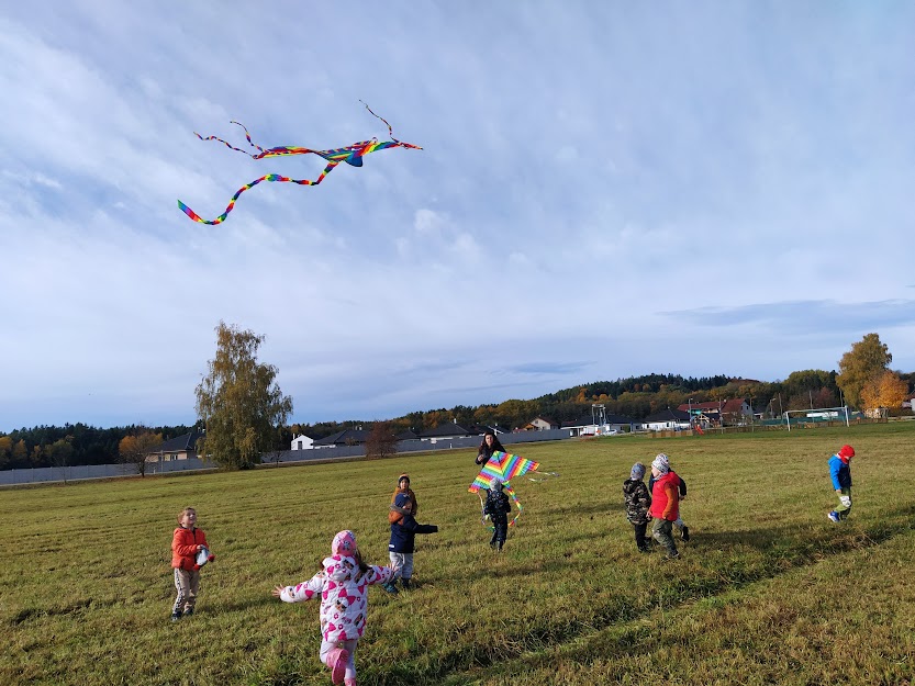 TY PODZIMNÍ DRAKIÁDY MAJÍ VŠECHNY DĚTI RÁDY. NAHORU, AŽ MEZI MRAKY TAM POŠLEME NAŠE DRAKY.