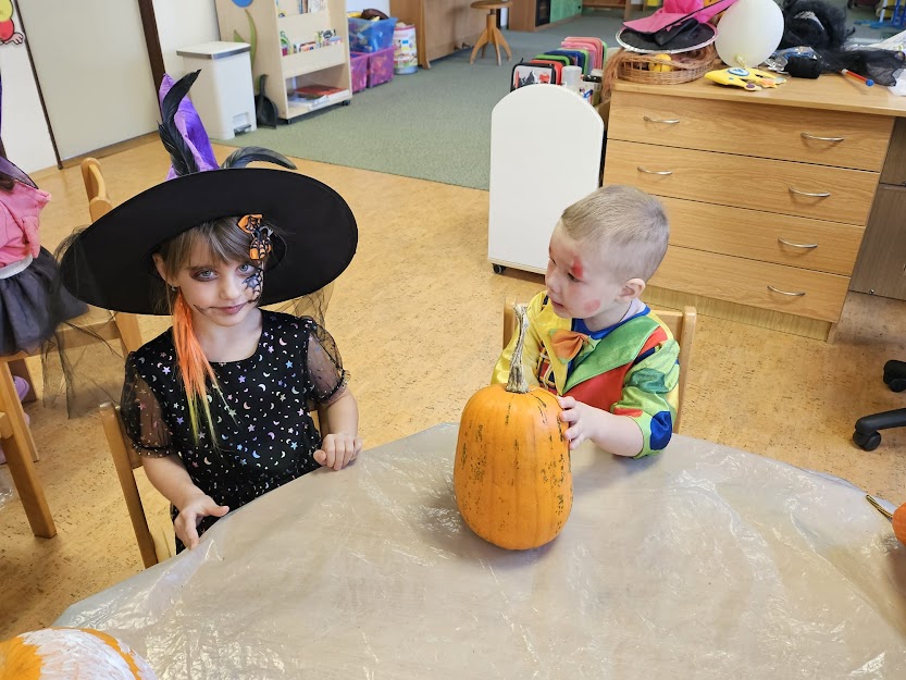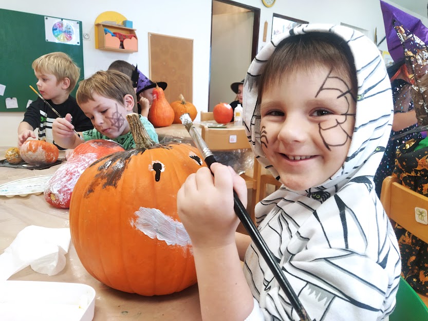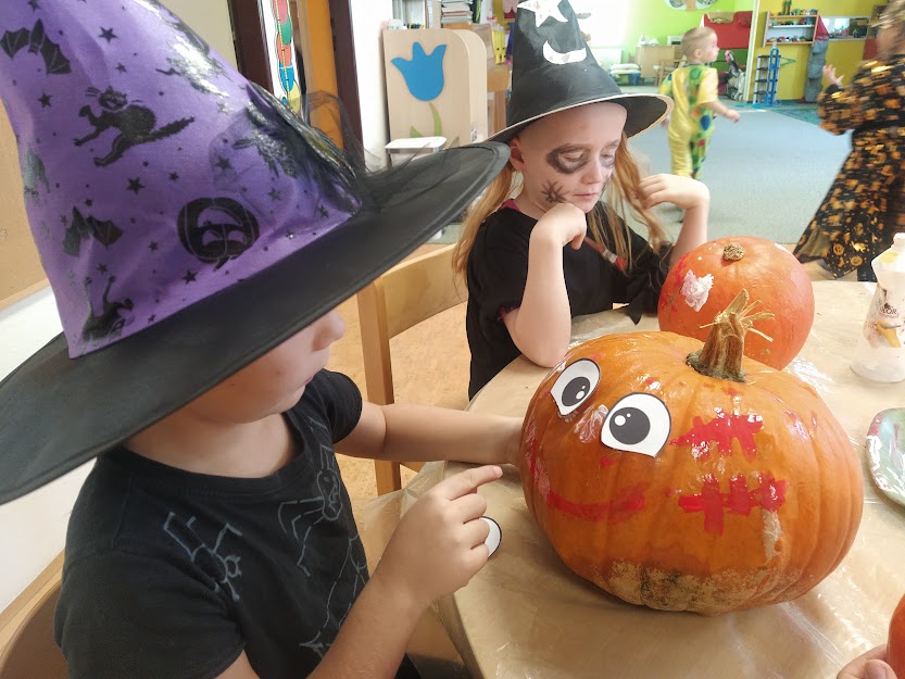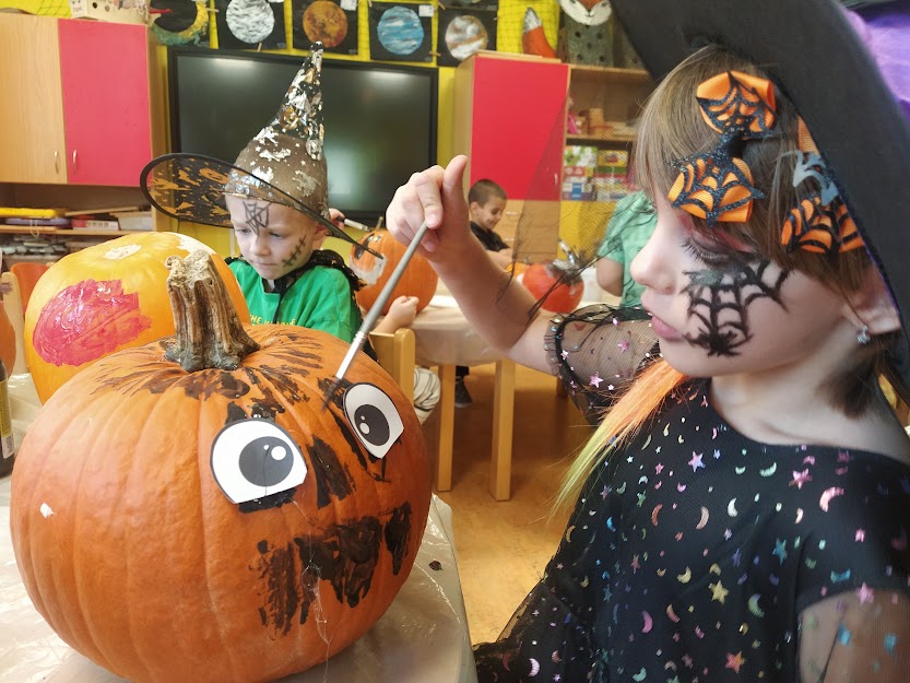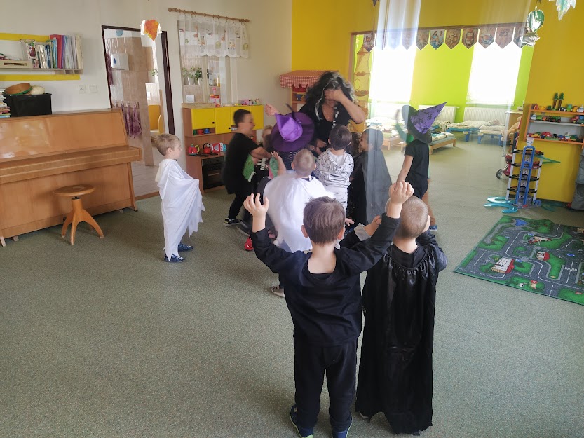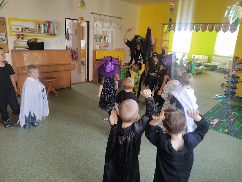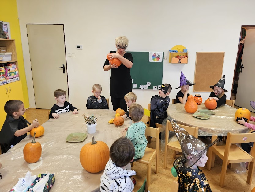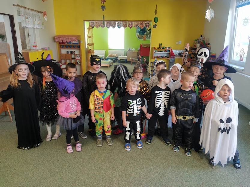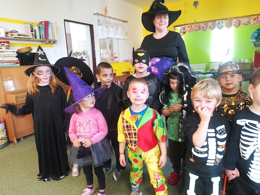NA HALLOWEENSKÝ DEN SE DĚTI Z MŠ OPRAVDU TĚŠILY. STRAŠIDELNÉ MASKY, MALOVÁNÍ NA OBLIČEJ, MALOVÁNÍ DÝNÍ, TANEC, ZÁBAVA A HRY, TO SE DĚTEM LÍBÍ. :)