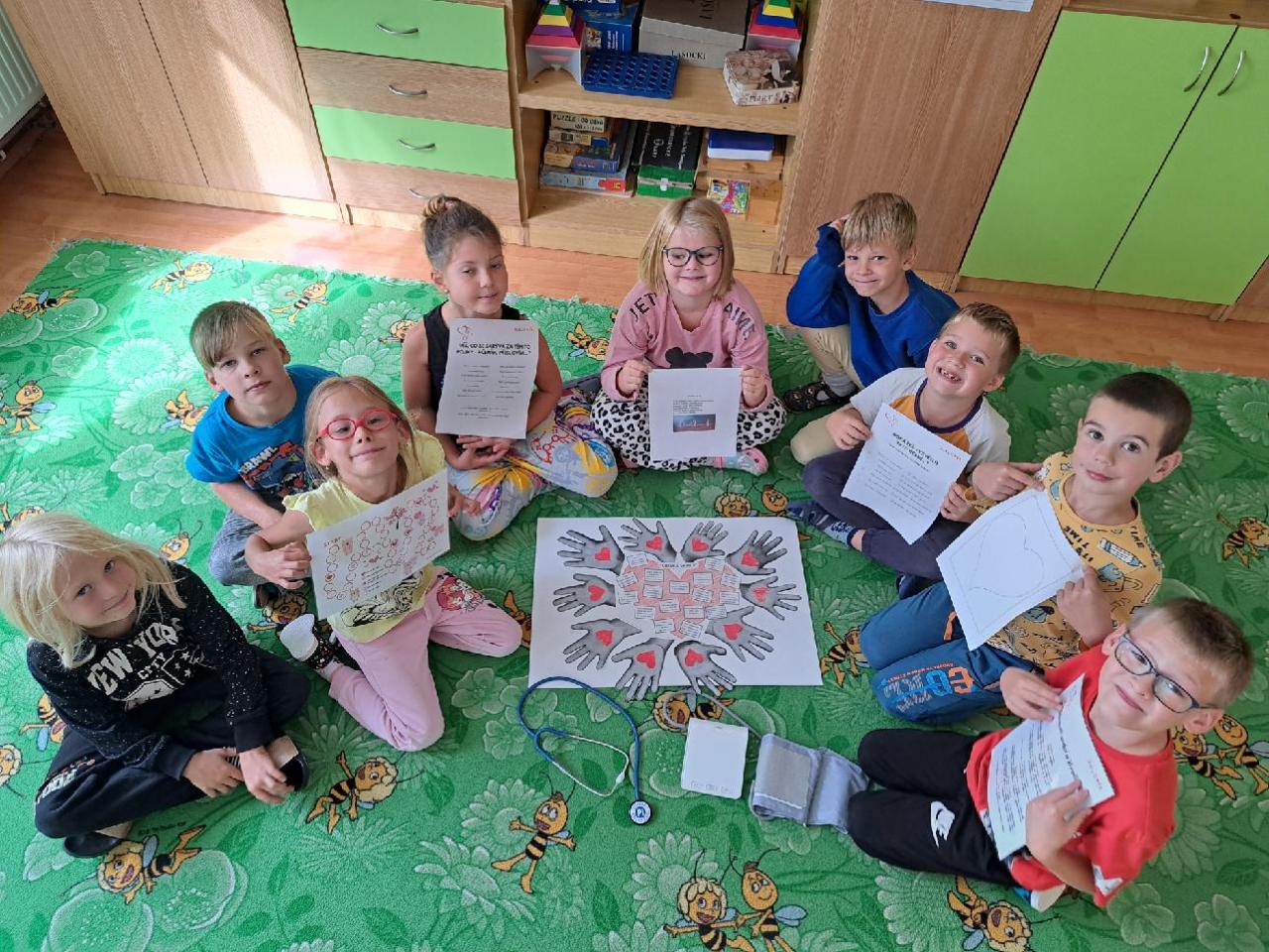 29. září je Světový den srdce a my jsme se tomuto tématu věnovali i v naší Dobrodružince. Paní vychovatelka pro nás připravila formou zábavy i efektivního vzdělávání několik aktivit. Začali jsme diskusí, kdy jsme si povídali o tom, jak vlastně srdce vypadá, jak moc důležité pro nás je, co srdíčku škodí a prospívá nebo jsme se dozvěděli i spoustu zajímavých informací o jedinečných srdcích ze zvířecí říše. Nahmatat srdeční tep bylo pro některé z nás obtížné, ale po krátké kardiorozcvičce cítil bušení srdce opravdu každý. Vyzkoušeli jsme si i poslech srdíčka fonendoskopem, měřili tlukot srdce a tep přístrojem zvaným tlakoměr a pověděli si i o postupu při resuscitaci. Poté jsme se podívali blíže na různá rčení a pořekadla, která o srdíčku známe a zkusili jsme si je vysvětlit. A tak už víme, co to znamená, když má někdo srdce na pravém místě nebo naopak srdce z kamene. Nechyběla ani vědomostní hra a srdíčkové počítání.