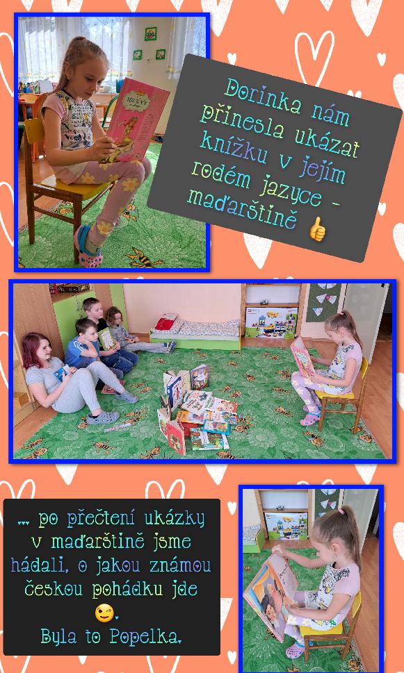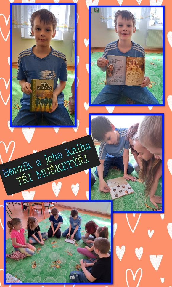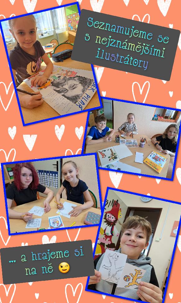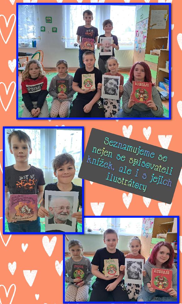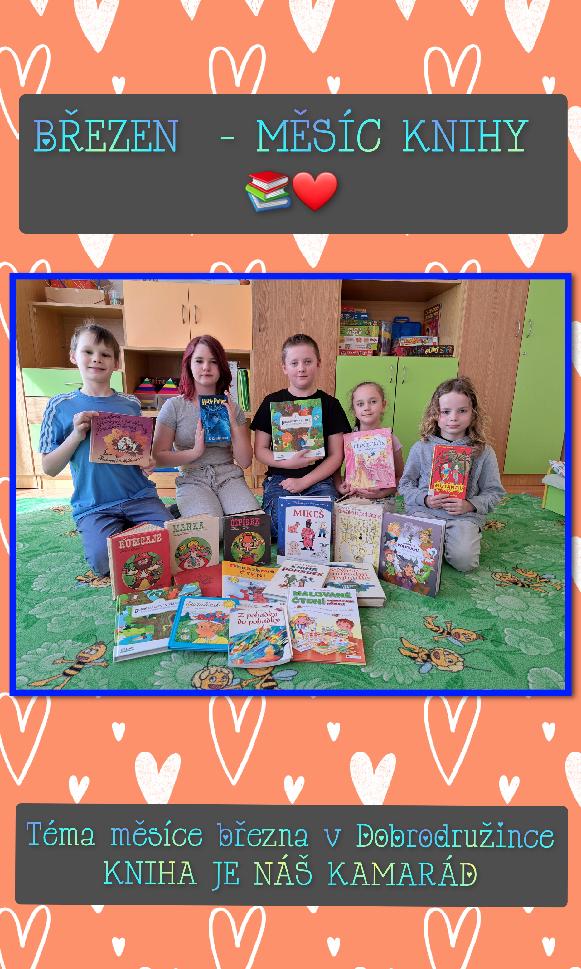 I my v naší DOBRODRUŽINCE jsme se tento měsíc věnovali knížkám. Připomněli jsme si význam knih, povídali jsme si o tom, jak se knihy vyrábí, kdo je spisovatel či ilustrátor, jaké jsou druhy knížek, představili jsme spolužákům svoji oblíbenou knihu, zahráli jsme si na nejznámnější ilustrátory a vyzkoušeli jsme si, jak se dá kniha prožít všemi smysly. Součástí celého projektu byly jako tradičně i aktivity pohybové, hudební a výtvarné, kdy základem vždy byla kniha a její příběh, postavy nebo hlavní dějová linka.