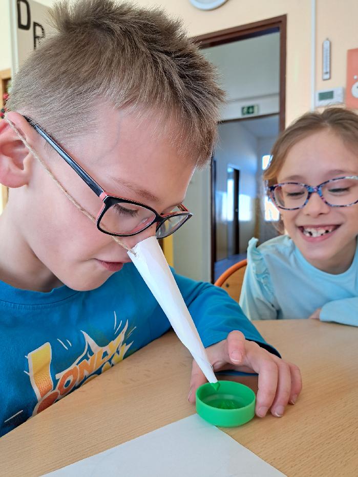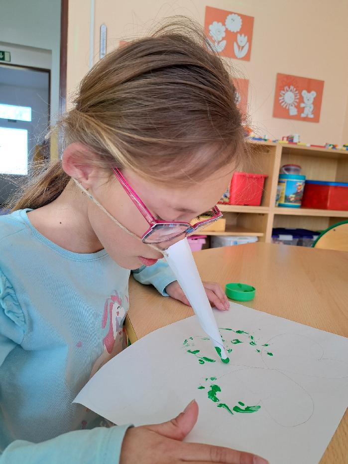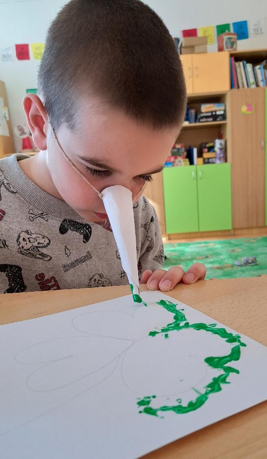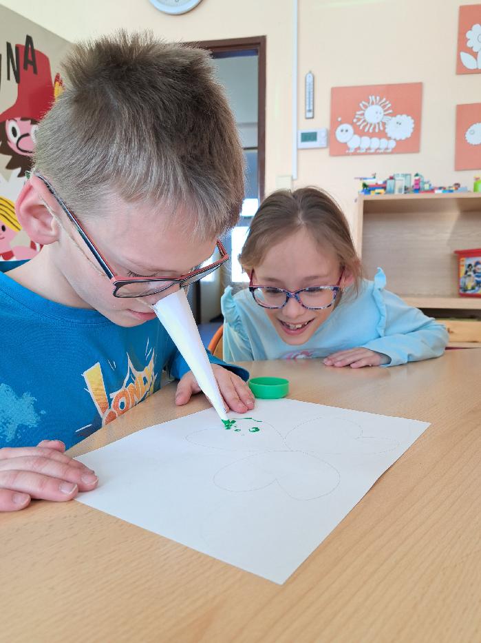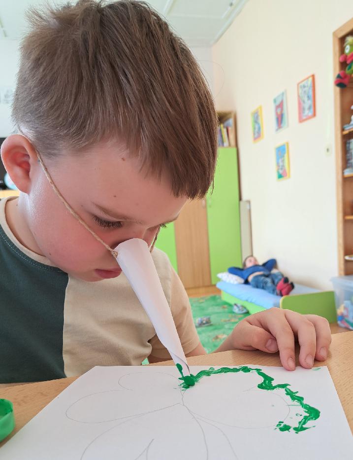 Jednou z aktivit byla totiž i tvořivá výzva – malování čtyřlístku. Ovšem s malým háčkem: děti mohly symbol štěstí malovat pouze za pomoci nosu, přesněji nosu „sněhuláka“! Tato originální disciplína vyvolala obrovské nadšení a smích, a všichni jsme si ji neskutečně užili.