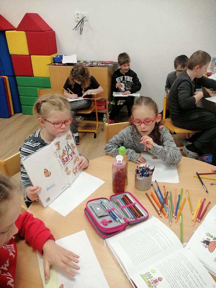 Nebo také podle psa Baryka, o kterém jsme četli předškoláčkům ve třídě paní učitelky Štindlové. Zejména my prvňáčci jsme dětem z MŠ ukázali, jak už umíme číst. S kamarády z vyšších ročníků jsme se společně naučili písničku o ježkovi. Zazpívali jsme si známé písničky o psech, třeba jak leze oknem, skáče přes oves nebo jak běží ke kamnům, když je mu zima. Nakreslili jsme si hada, Baryka i ježka. Ve čtvrtek 7. března jsme byli společně posluchači, vypravěči, ale i ilustrátory příběhu.