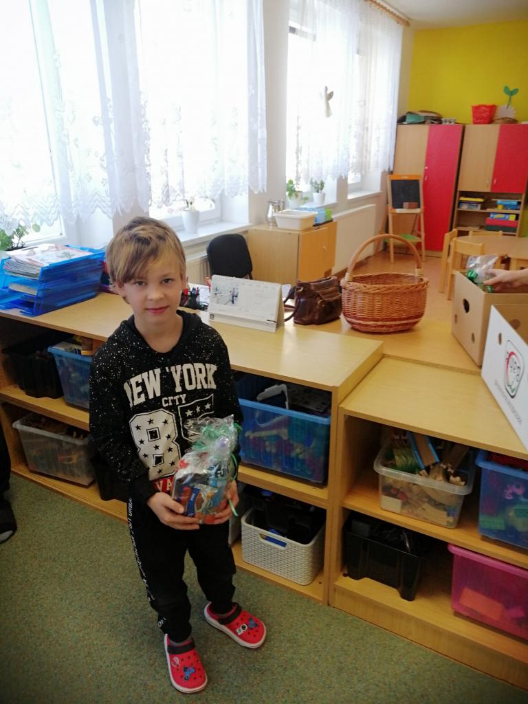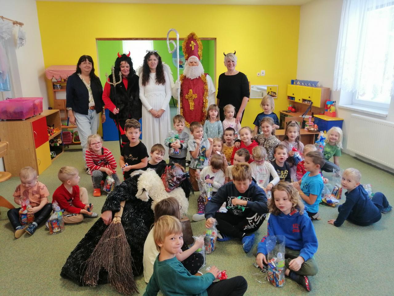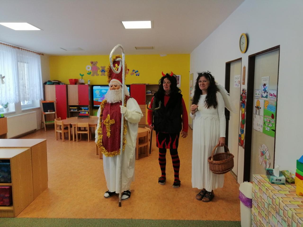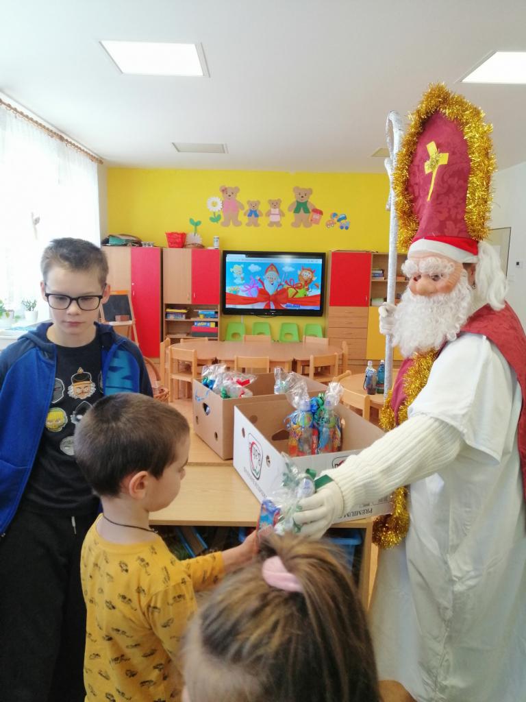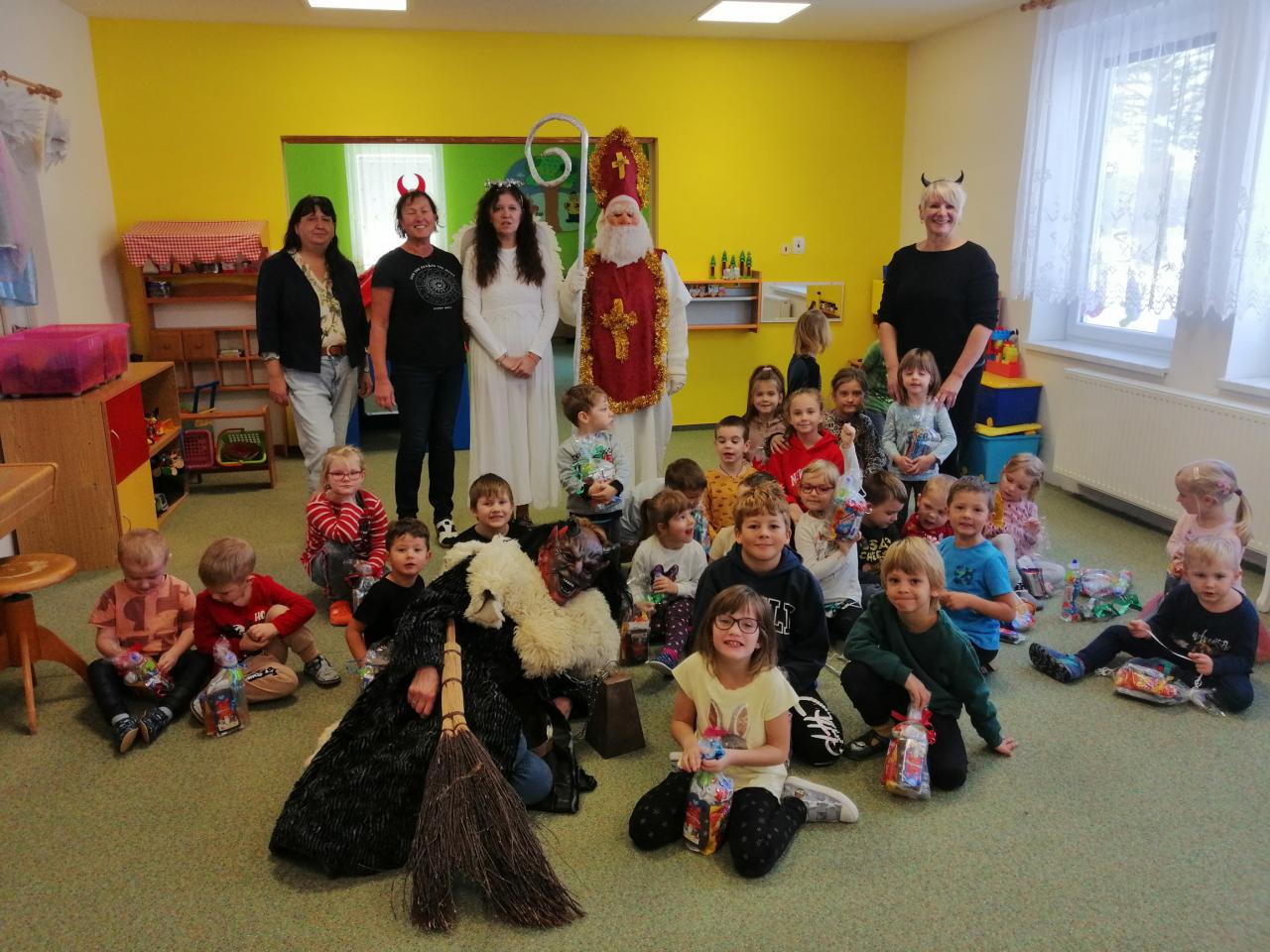 A protože jsme děti hodné v MŠ, ale i naši kamarádi ze ZŠ nezlobí, učí se, nehádají se, nepřišel Mikuláš s Andělem a hodnými čertíky na koláč, ale za písničky a básničky nám nadělil v úterý 5. 12. mnoho dobrot.
