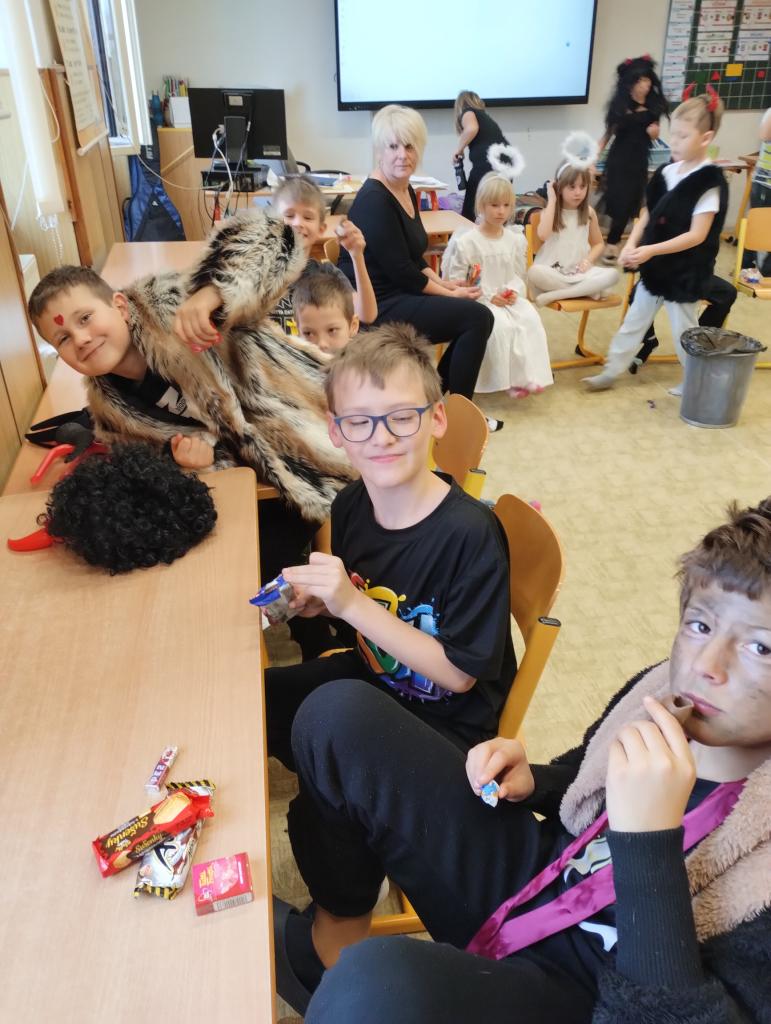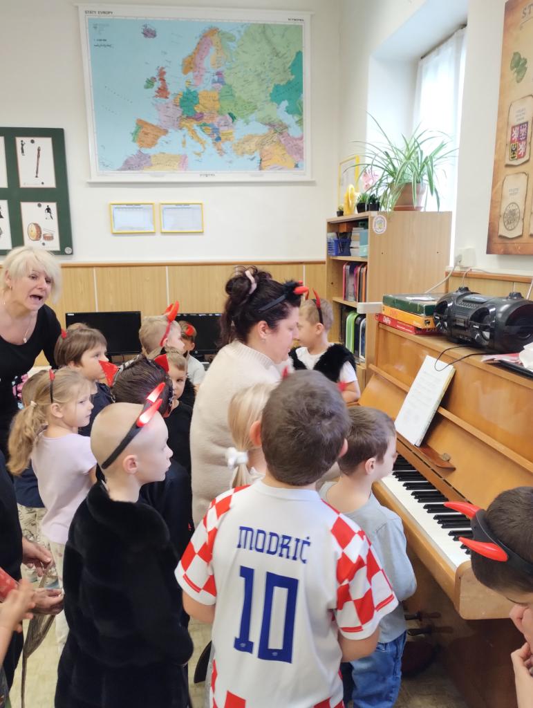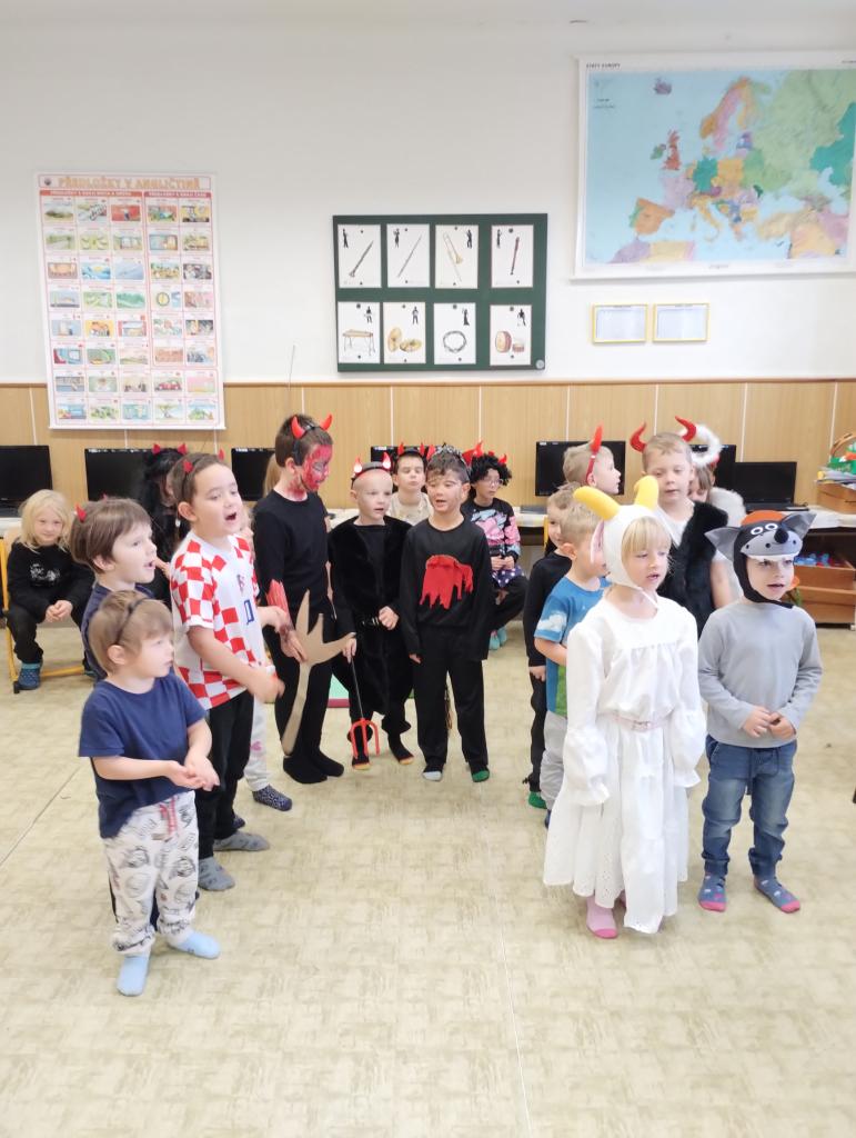 Přestože k některým dětem zavítal Mikuláš, čert a anděl zavítal domů již v pátek, nás školáky vše ještě čekalo. Do školy jsme pozvali děti z MŠ, abychom si užili společné dopoledne. Broučci i Motýlci z MŠ připravili krásné vystoupení, ale i každá třída ZŠ připravila program pro ostatní. V letošním roce jsme byli čertíky a andílky každý z nás😊. Společně jsme zpívali, recitovali, tvořili vánoční stromeček nebo čertí a andělské zápichy. Nakonec nás čekalo překvapení – dopis od čertů, kteří nám ukryli nadílku od Mikuláše. Společnými silami jsme ji vypátrali a užili jsme si sladkou odměnu.