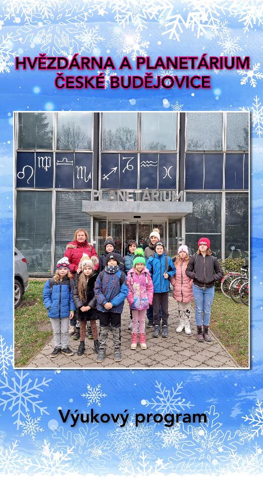 Nejde elektrika? - nebudeme moci svítit. Když se nesvítí, je tma, …. A tyto myšlenkové pochody nás přivedly až k tématu VESMÍR. No a tak jsme se ponořili do hlubin vesmíru a s využitím prožitkového učení jsme navštívili HVĚZDÁRNU A PLANETÁRIUM v Českých Budějovicích.
